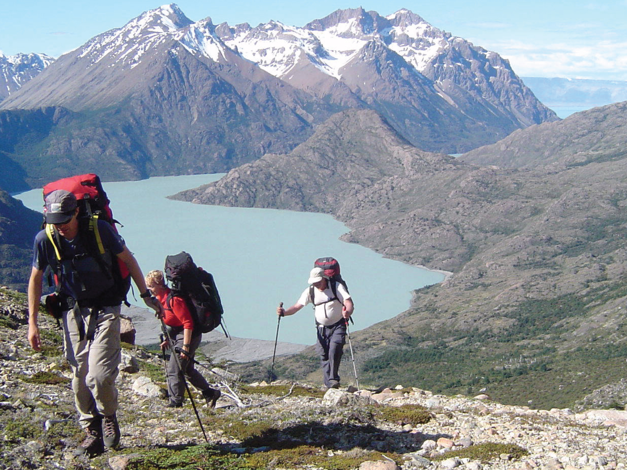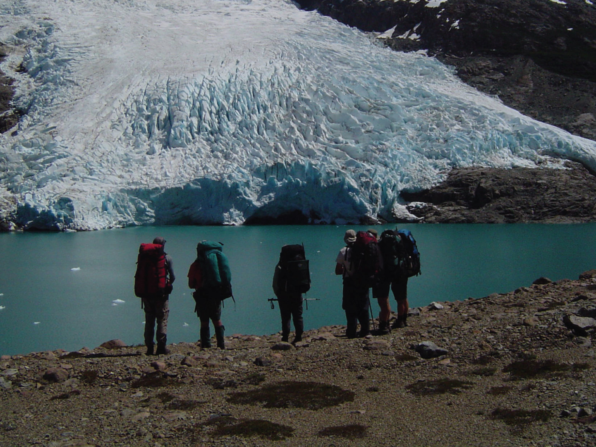 From our previous night campsite, we will continue our way up to the “Paso Norte” (1100 meters or 3500 feet a/s/l), our highest point of the trip. Upon arriving, the view is of some astounding 360º, and wide open on the valleys below. After some time for pictures (weather allowing), we will start walking downhill to the “Bosque Quemado” (burned forest) valley, approaching lake Viedma’s Moyano sound. This day is mostly off the beaten track, crossing through “mallines”, rocky terrain and bush wagging. Estimated walking time for the day is of about 8 hours. We will set camp for the night at the “Puesto”, a beautiful spot by the shores of lake Viedma (300 meters or 980 feet a/s/l).