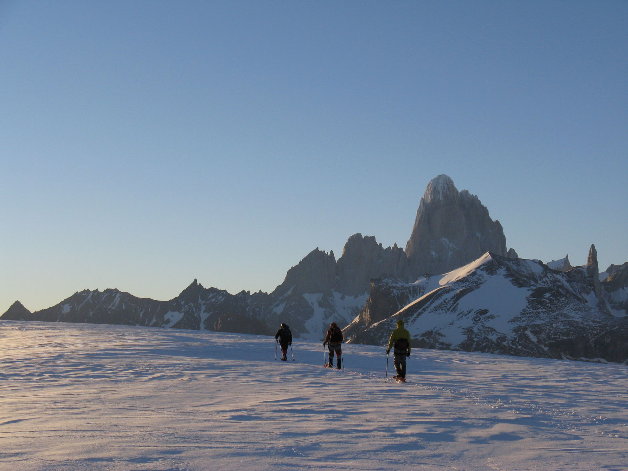 This is the crux of the trip; we'll need a reasonable good day in order to reach the pass. Weather allowing, there are excellent views of Fitz Roy, Piergiorgio and Gorra Blanca, among other peaks. After the camp, there are some steep rocky passages in order to reach the glacier. Once on the Ice or snow; we'll start using crampons, rope and eventually snowshoes. We will return in the afternoon to our camp located in “Laguna de los 14”. The total walking time is 10-12 hours, and theelevation gain is 600m aprox.