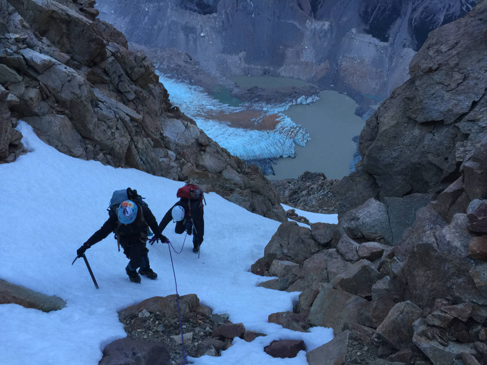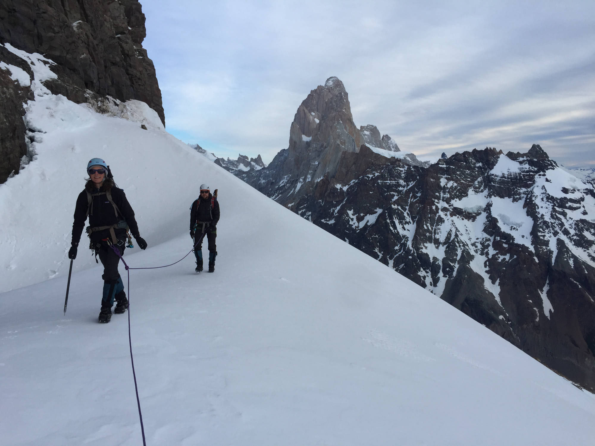 Early start to climb to continue with crampons and rope to the “Paso del Cuadrado” Pass; the views are worth the effort on a clear day! We continue down to traverse the “Inferior Fitz Roy Glacier”, in order to access to the ridge of “Filo del Hombre Sentado” : the views are very unique here, with the west face of Fitz Roy and the East Face of Cerro Torre! Back same way to PIedra Negra Camp in the Afternoon. Hiking time 8-10 hs depending on the snow conditions.
