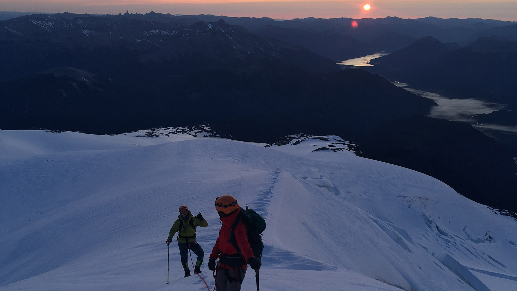 We will leave at dawn towards the summit. In the “Castaño Overa” glacier we will rope up and use the crampons. We will pass the "Filo de la Vieja" to later reach the “Depression”, where there are large crevasses to be overcome. From there, we will go to the col between the International Summit and the “Pico Argentino”. From the col to the summit is the most technical section, an icy and sometimes mixed snow ramp up to a 50° slope. After enjoying the summit and taking photos, we will return back to the refuge.