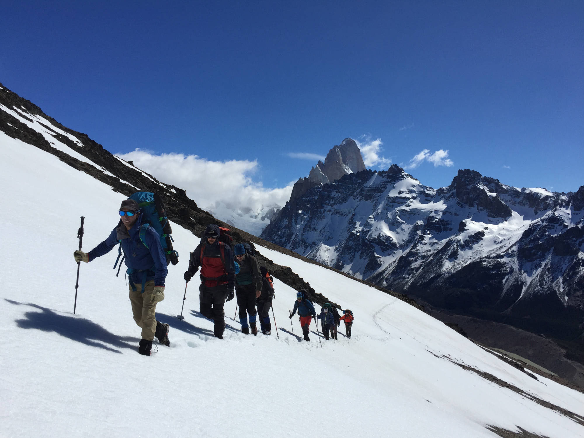 After 30-40 minutes of hiking, we´ll cross the Tunnel river, either by wading through the river or using a fixed cable and harnesses, (depending on the conditions). We´ll continue the ascent towards Paso del Viento. Along scree, moraines and the Inferior Tunnel Glacier. From the pass, you can appreciate a portion of the Patagonian Ice Field, the origins of Glacier Viedma and the Cerro Mariano Moreno mountain range. We´ll descend back to the camp Laguna Toro in the afternoon. Its a 7-8 hour hike with an elevation gain of 900m.