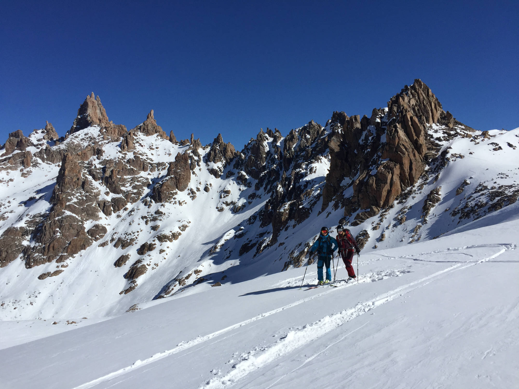 Ski touring experience required: Backcountry ski descents & skinning uphill.