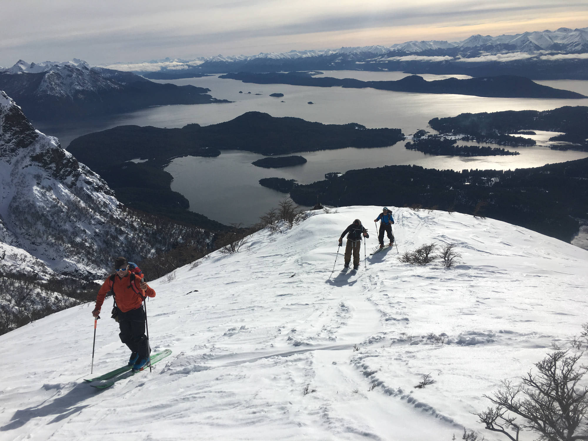Ski Touring at Cerro Lopez Area. After 1h drive to Circuito Chico, and we will approach to the snow by a mountain trail, and then ski up Filo de las Cabras or Pico Turista, this is a very scenic place to ski, with amazing views! Drive back to Bariloche. Lodging at Bariloche.