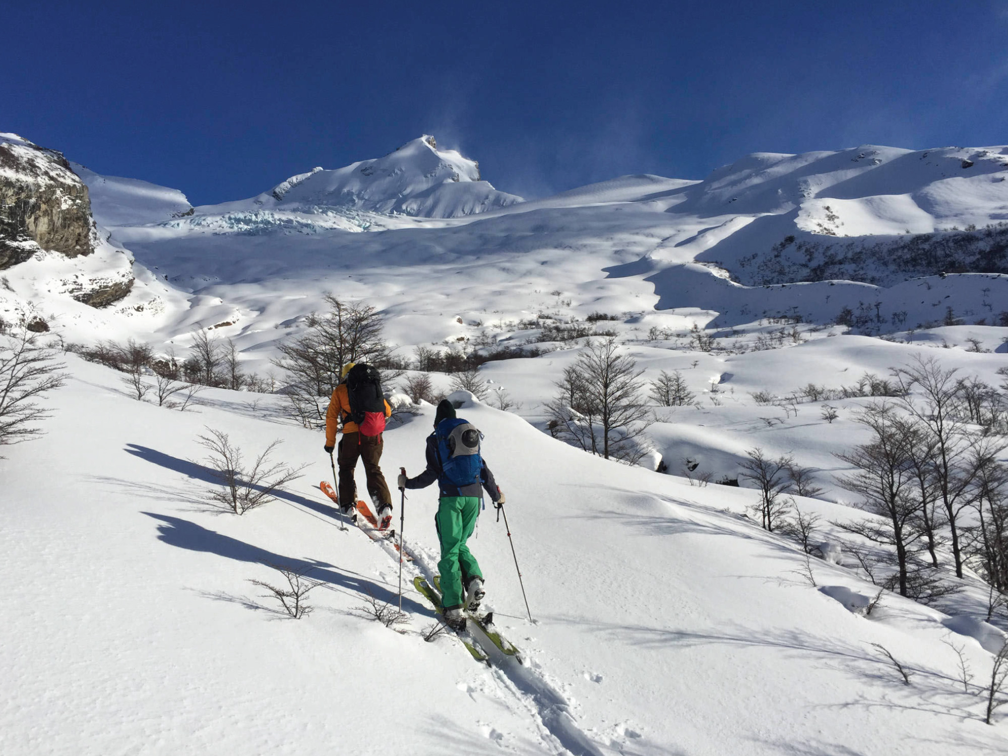 Ski touring experience required: Backcountry ski descents & skinning uphill.
