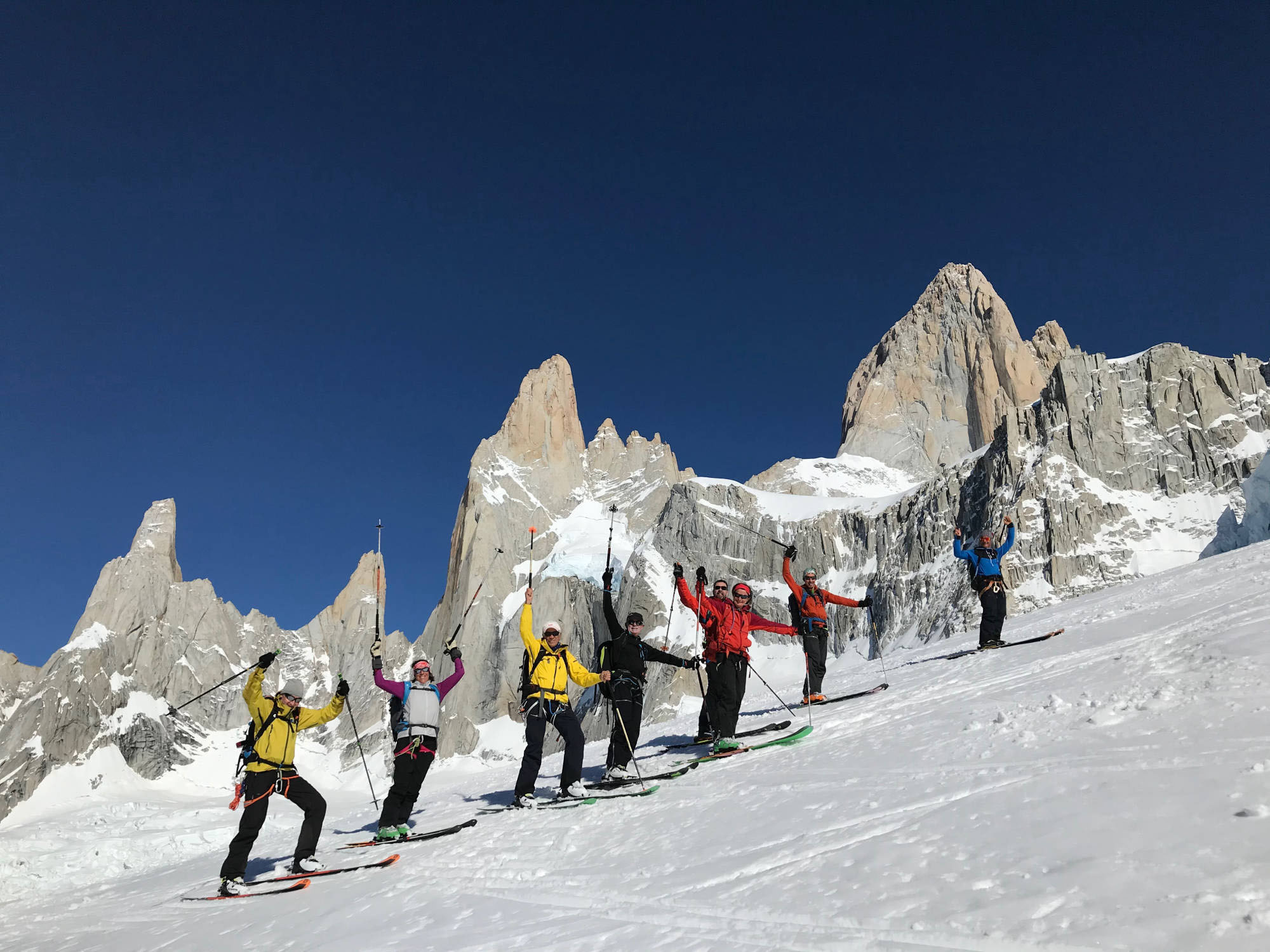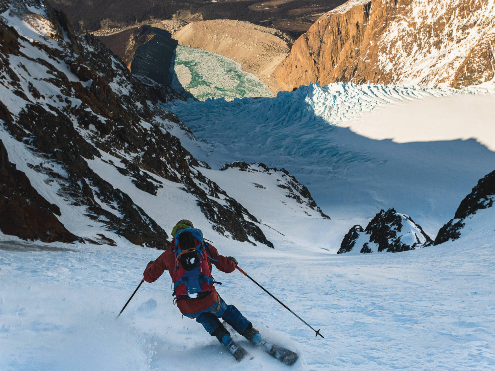 We will depart early in the morning to El Pilar (15 km). Once there, we will head up around 2.5h to Poincenot Camp, where we´ll leave the camping equipment. After that, we´ll continue to “Río Blanco” valley, and start the steep ascent to “Laguna de los Tres” (1200m/a/s/l). From there on, we will go up with the skis on the East face of Cerro Madsen for another 600m of elevation gain. The views of Fitz Roy and Piedras Blancas Glacier are very impressive at the summit ridge! After a break and some photos, we´ll ski down, sometimes all the way down to the Río Blanco, then hike back to Poincenot Camp. Approximate time: 10h – Elevation Gain: 1300m.