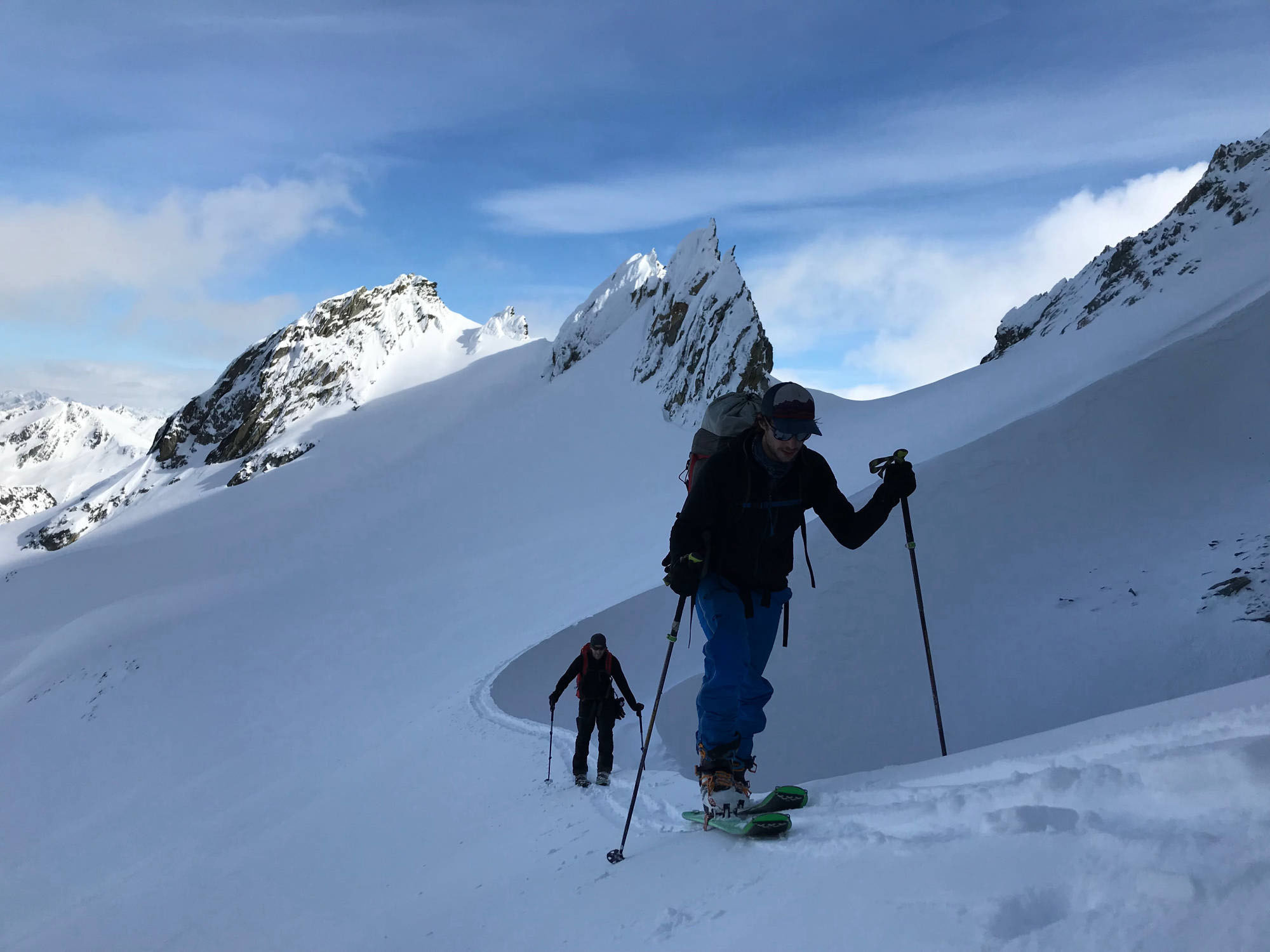 Ski touring experience required: Backcountry ski descents & skinning uphill.