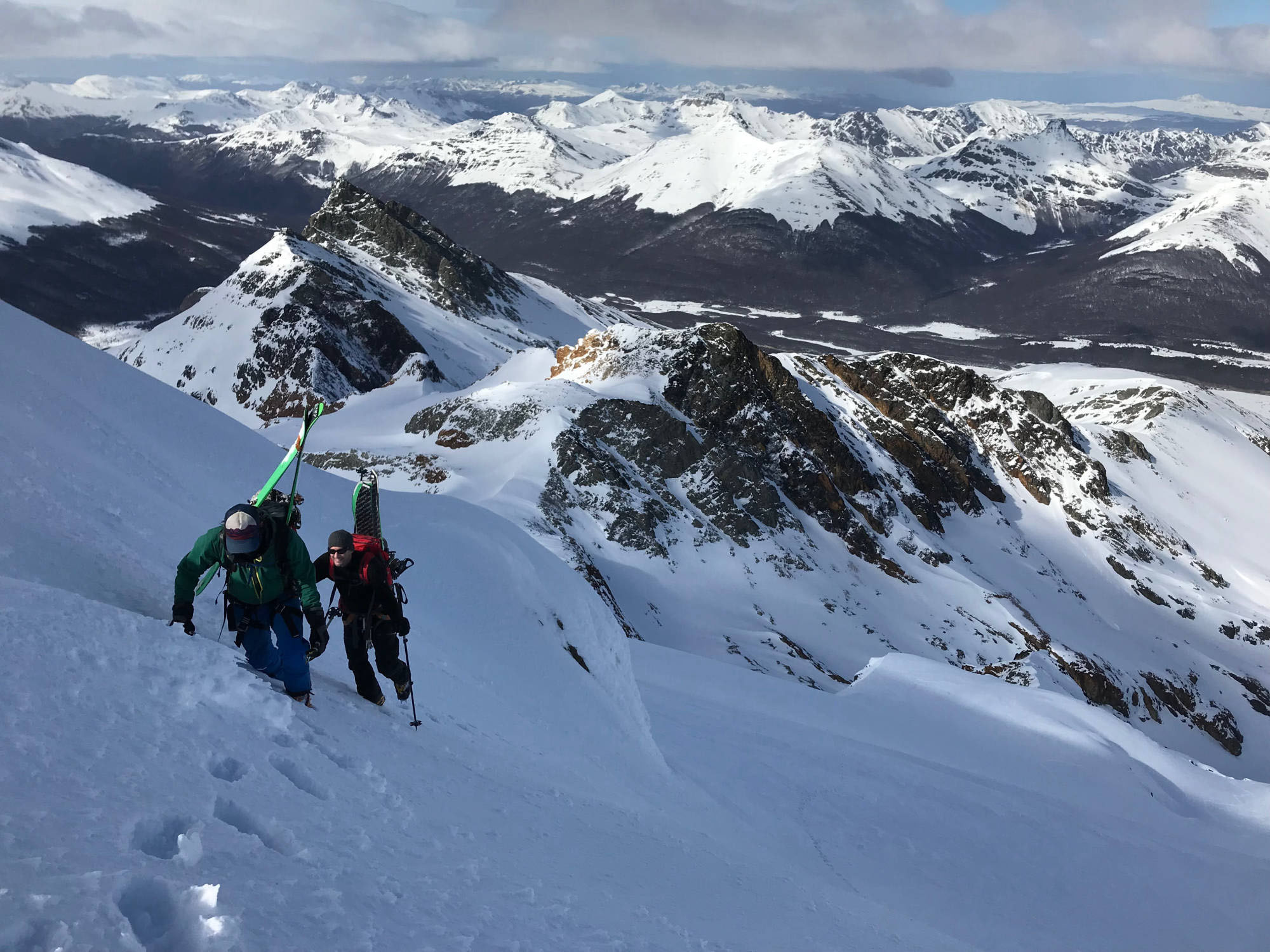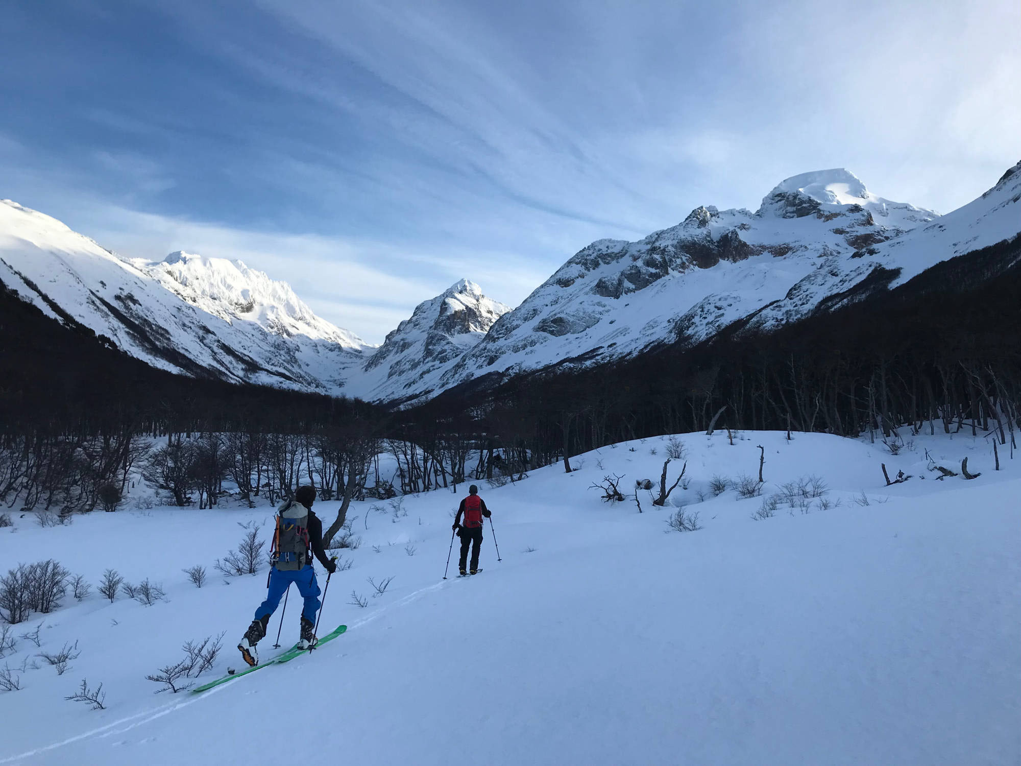 It is very magical to be skiing at the southernmost city in the world, starting at sea level, with views of the Beagle Channel and the Mountain Range. There are excellent valleys and mountains for backcountry ski & ski touring, with easy access from the main road. For fans and lovers of ski adventures, Ushuaia offers the possibility of great backcountry ski, near El Castor Ski Resort, Martial and other mountains. Ushuaia is a very interesting city, in front of the Beagle Channel and surrounded by mountains around 4000 ft. Based in the city, there are several possibilities for day trips with 30min drive, from easy slopes to steep ones, your guide UIAGM-IFMGA will offer you different options according to the weather-snow conditions, and your personal skills. This trip could be combined with a week of ski at El Chaltén or Bariloche.